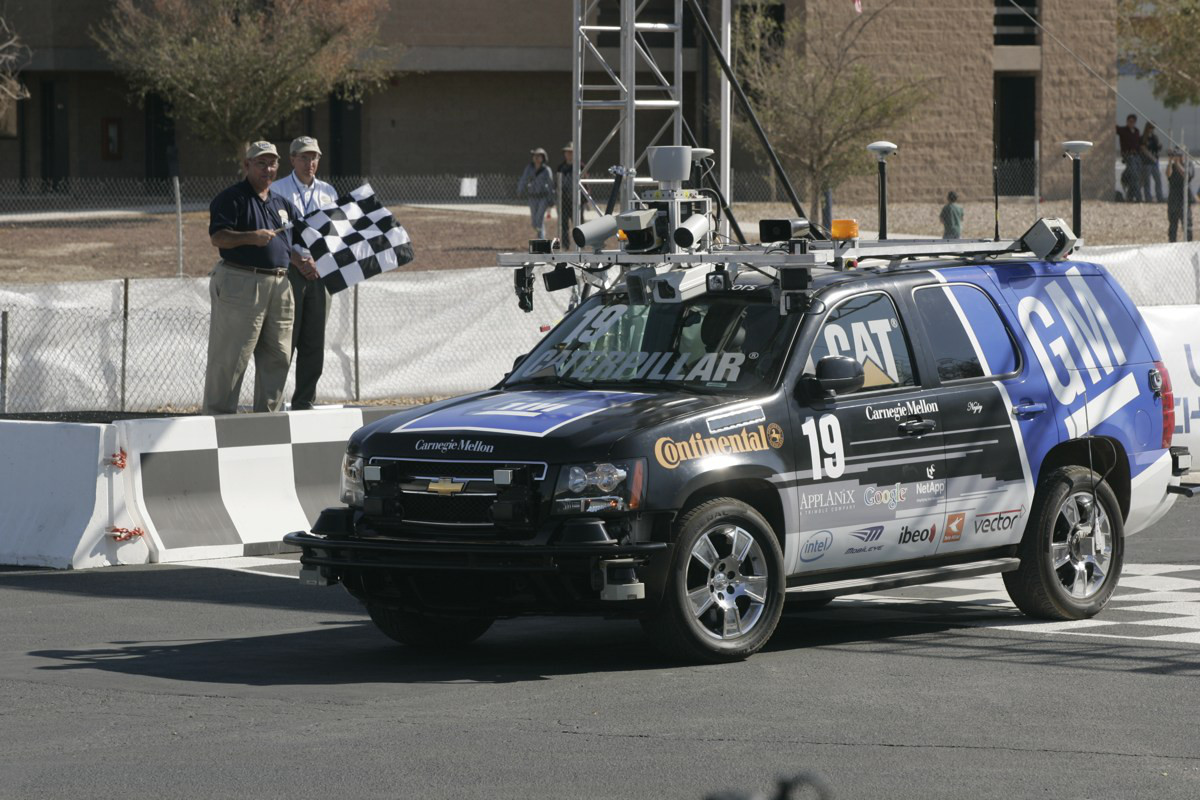In the 2007 DARPA Urban Challenge, fully-autonomous ground vehicles will conduct simulated military supply missions in a mock urban area. Robotic vehicles will attempt to complete a 60-mile course through traffic in less than six hours, operating solely under their own computer-based control. To succeed, vehicles must obey traffic laws while safely merging into moving traffic, navigating traffic circles, negotiating busy intersections, and avoiding obstacles [RI project page][official project page]. Young-Woo Seo and Chris Urmson, A perception mechanism for supporting autonomous intersection handling in urban driving, In Proceedings of the IEEE/RSJ International Conference on Intelligent Robots and Systems (IROS-2008), pp. 1830-1835, Nice, France, September, 2008. [10.1109/IROS.2008.4651162] Chris Urmson, Joshua Anhalt, Drew Bagnell, Christopher Baker, Robert Bittner, M. N. Clark, John Dolan, Dave Duggins, Tugrul Galatali, Chris Geyer, Michele Gittleman, Sam Harbaugh, Martial Hebert, Thomas M. Howard, Sascha Kolski, Alonzo Kelly, Maxim Likhachev, Matt McNaughton, Nick Miller, Kevin Peterson, Brian Pilnick, Raj Rajkumar, Paul Rybski, Bryan Salesky, Young-Woo Seo, Sanjiv Singh, Jarrod Snider, Anthony Stentz, William Red Whittaker, Ziv Wolkowicki, Jason Ziglar, Hong Bae, Thomas Brown, Daniel Demitrish, Bakhtiar Litkouhi, Jim Nickolaou, Varsha Sadekar, Wende Zhang, Joshua Struble, Michael Taylor, Michael Darms, and Dave Ferguson, Autonomous driving in urban environments: Boss and the urban challenge, Journal of Field Robotics: Special Issue on the 2007 DARPA Urban Challenge, Part I, pp. 425-466, 2008. Chris Urmson, Joshua Anhalt, Drew Bagnell, Christopher Baker, Robert Bittner, John Dolan, Dave Duggins, Dave Ferguson, Tugrul Galatali, Hartmut Geyer, Michele Gittleman, Sam Harbaugh, Martial Hebert, Thomas M. Howard, Alonzo Kelly, David Kohanbash, Maxim Likhachev, Nick Miller, Kevin Peterson, Raj Rajkumar, Paul Rybski, Bryan Salesky, Sebastian Scherer, Young-Woo Seo, Reid Simmons, Sanjiv Singh, Jarrod Snider, Anthony Stentz, William Red Whittaker, and Jason Ziglar, Tartan racing: a multi-modal approach to the DARPA Urban Challenge, Tech Report, the Robotics Institute, Carnegie Mellon University, 2007. |
