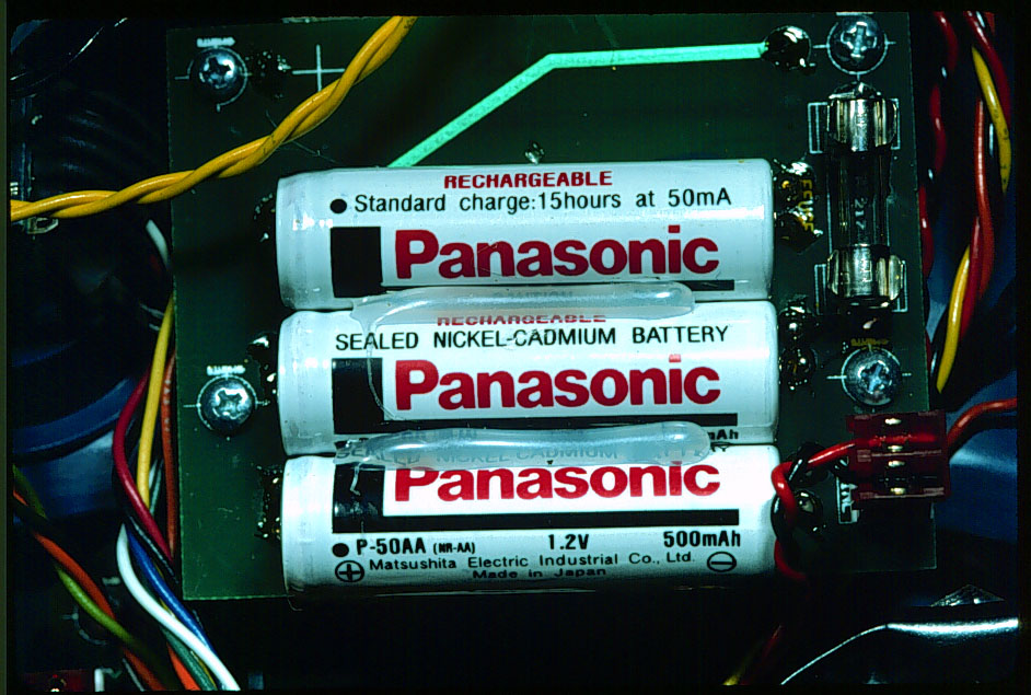 The e-meter uses rechargeable Panasonic NiCad batteries. It comes with a