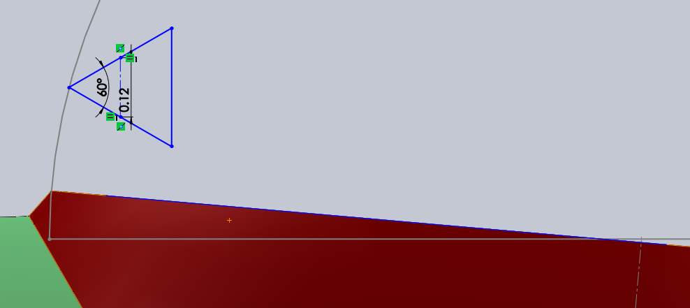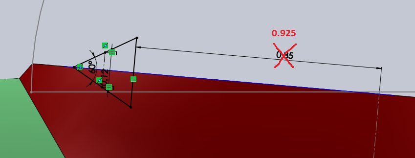 - Dimension the construction line to length 0.12 inches. The result should look like this: