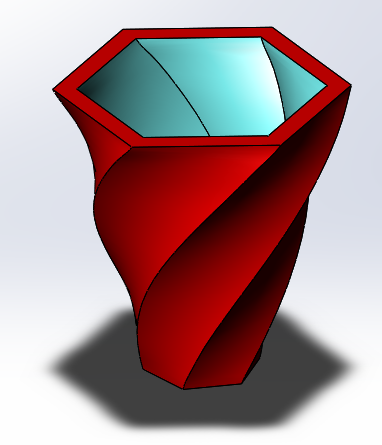 - Click on the red trim plane and drag it to bend the vase to about 75 degrees.