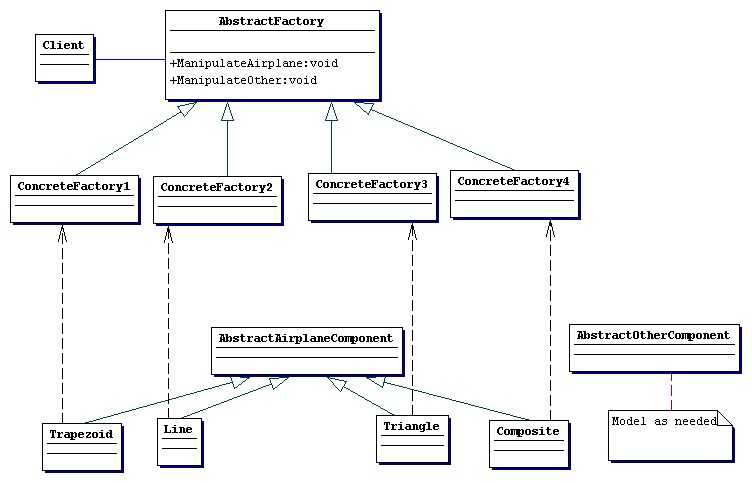 The subsystem could also be extended to something other than the F/A-18 aircraft. This subsystem needs to be modeled accordingly, creating a wireframe and component objects with relations for the new system. Since the subsystem plans to use the Abstract Factory Pattern, minimal other changes are anticipated.