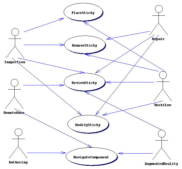 The Modeling Subsystem will mainly interact with other subsystems. There will be situations where the subsystem will need to provide a web-based user interface for users who are not directly interacting with the airplane to review its status and interact with sticky notes. The user interface will lie on top of the methods we provide for other subsystems, so it will serve to manipulate stickies or navigate through the airplane and its components. For example, an officer might want to quickly check the availability of an aircraft without having to go down to the hangar and put on a wearable computer. The officer might also wish to review stickies on the airplane or look at a look at a specific aircraft components with all the stickies located on it. The officer could also obtain rotated views of the aircraft or separate components. This tool should be intuitive to use. Its main purpose will be to easily navigate through an aircraft without having to go to the aircraft's location. To protect the system from human errors, only authorized users will be allowed to use the system. The users will only have read access to database information, and will not be allowed to make changes, but only to view/navigate through the already existing aircraft and corresponding data.