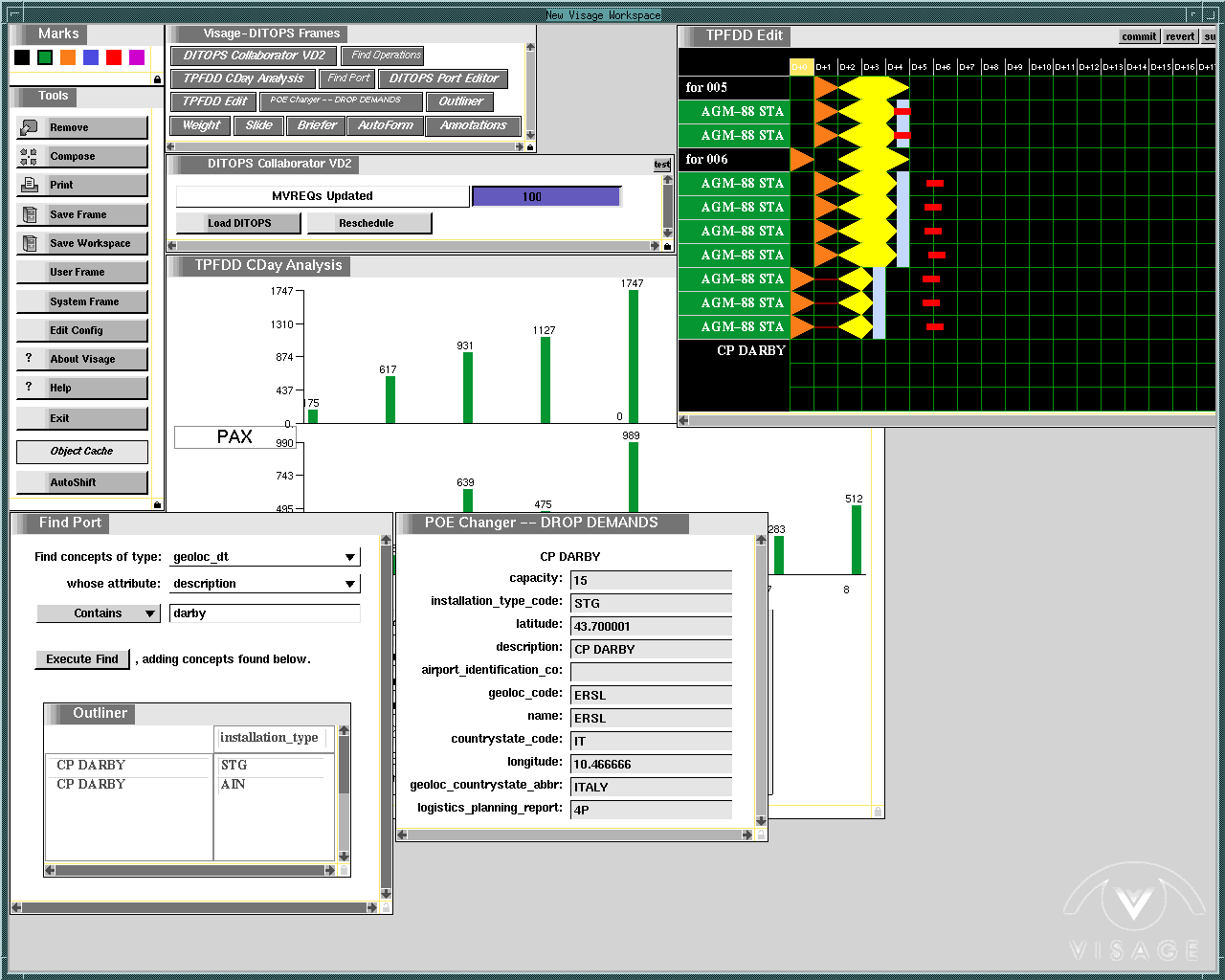 Figure 12: We tear-off a "Find Port" frame, and retrieve the Darby storage facility from the Visage data repository.