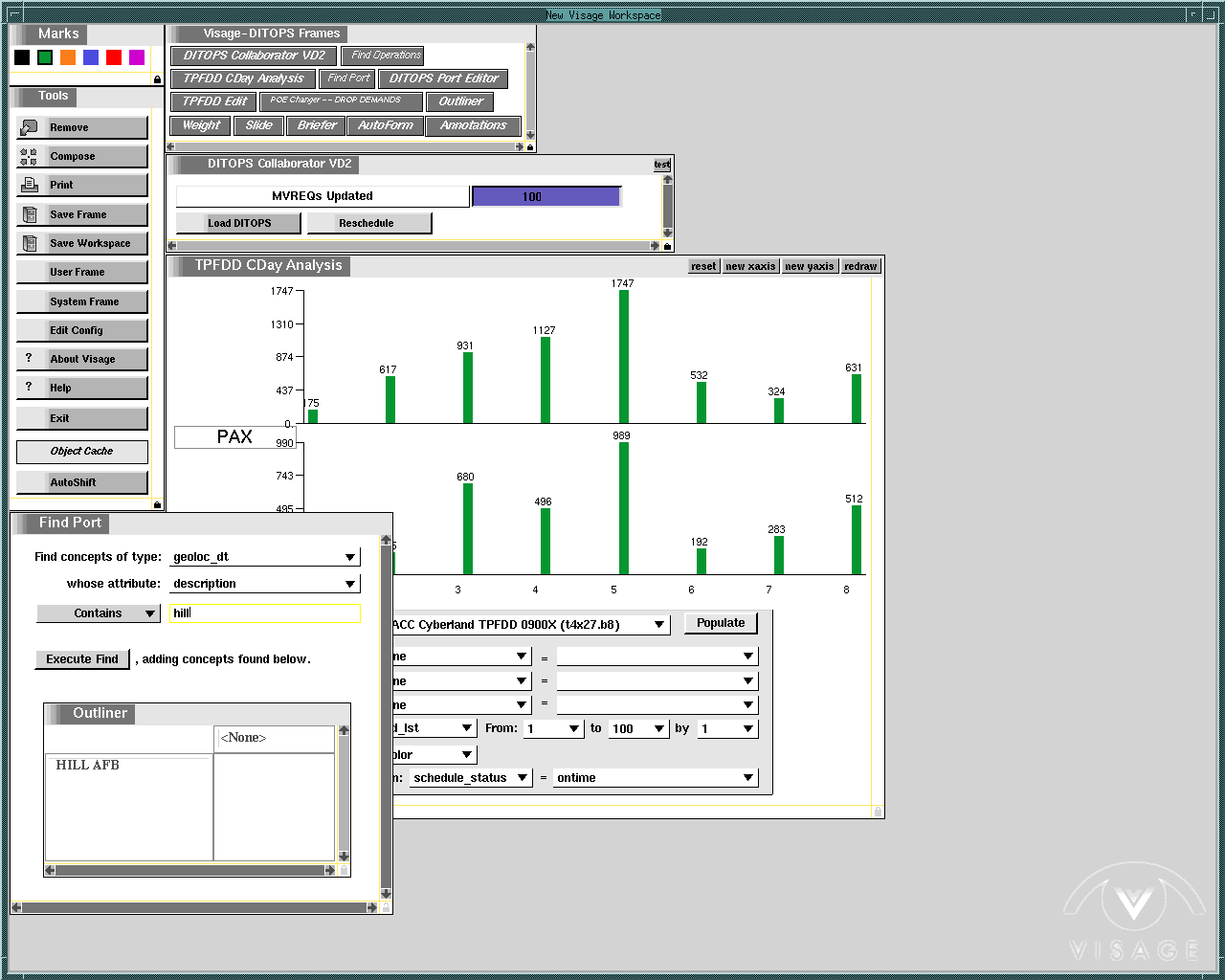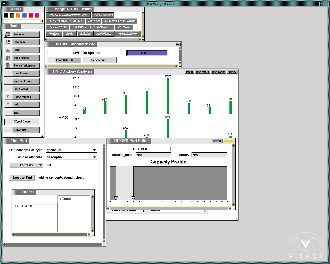 Figure 4: We use a "Find Port" frame to retrieve "Hill AFB" from the Visage data repository.