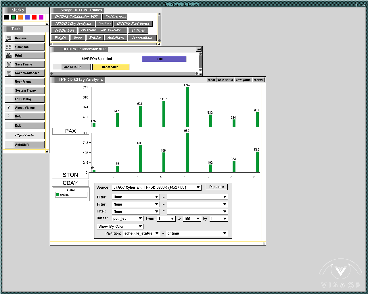 Figure 33: We can see in the "TPFDD CDay Analysis" frame that everything