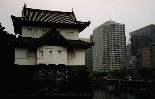 house?) inside the moat of the imperial palace, the contrast of the traditional