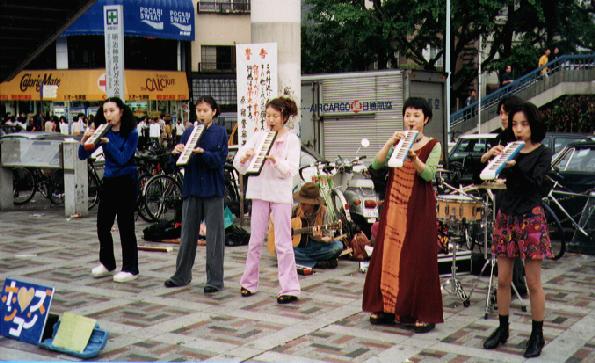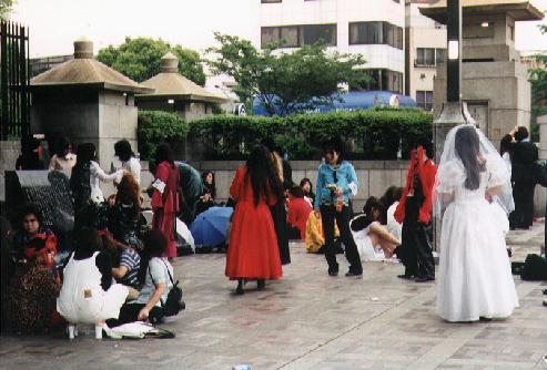youth (particularly the punks) come out to the entrance to Yoyogi to see