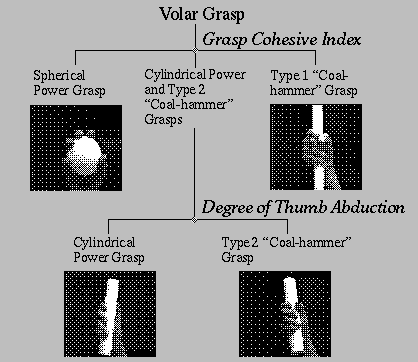 the "coal-hammer" grasp are used to indicate contact of the thumb with the