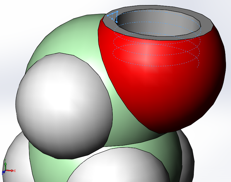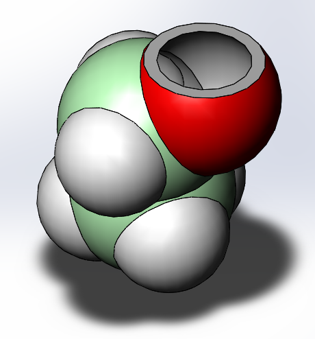 - Create an Extruded Base feature on the flat lip of the opening in the Oxygen1 molecule.