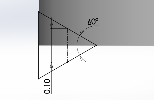 - Dimension the angle between the two diagonal lines to 60 degrees.