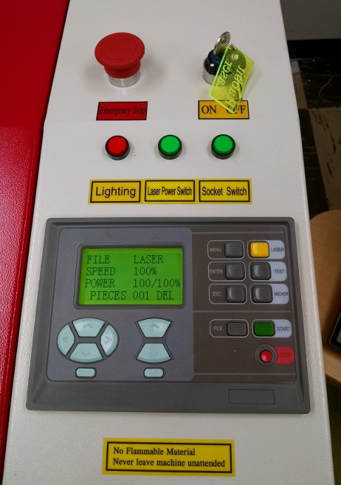 - After the laser cutter beeps and stops, raise the lid and remove your part