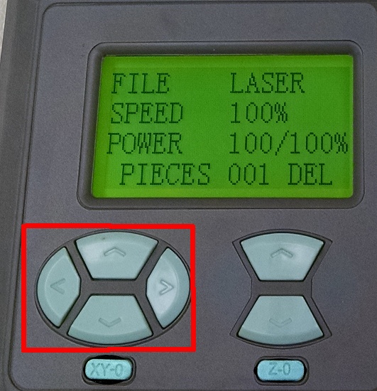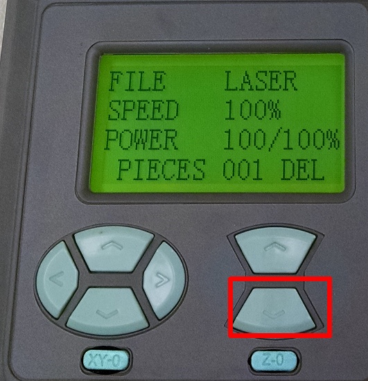 - You can use the XY-0 button to send the laser head to its