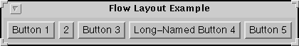 Above are pictures of two programs, each of which displays five buttons. The Java code for both programs is almost identical. So why do they look so different? Because they use different layout managers to control the layout of the buttons.