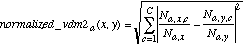 More importantly, though, Equation (20) should have been a copy of Equation (15) (i.e., with the square root) rather than Equation (8). Similarly, there should be a square root over the sum of squares in Equations (22) and (26). Also, the function "vdm_a()" referred to in Equations (22) and (26) should be taken to be the one defined in the fixed version of Equation (20), i.e., the same as "normalized_vdm2()" as defined in Equation (15).