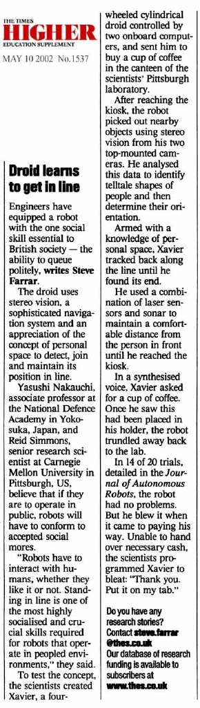 The Times Higher Education Supplement (http://www.thes.co.uk/), May 15, 2002.