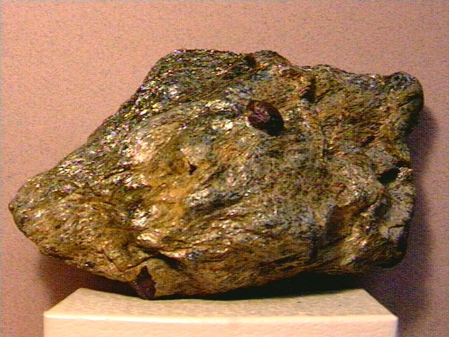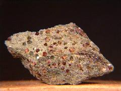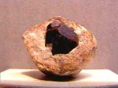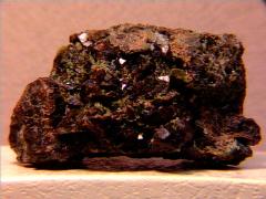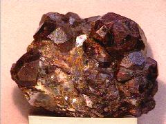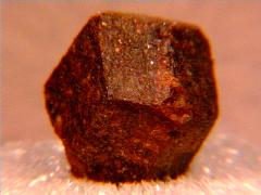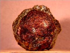 The surface of this thumbnail almandine from Roxbury, Connecticut is beginning to alter. Thanks to the Carnegie Natural History Museum Store for the specimen! | |