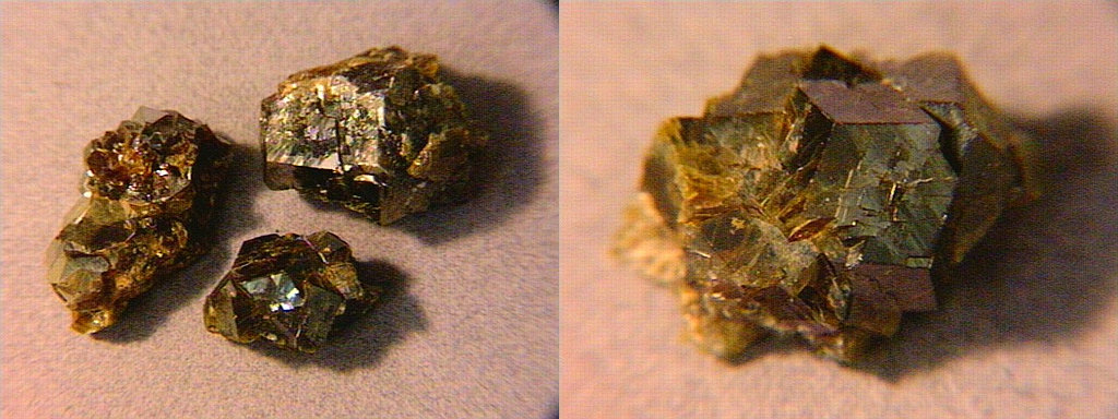 More Arizona green andradites - these have a strong metallic appearance, sort of a Japanese Beetle color. Thanks to Paul Cordalis' auction on eBay for the specimen! |