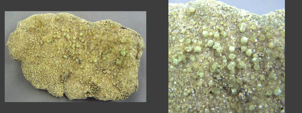 Another small-cabinet specimen of light-green demantiods on matrix from Cerro De La Concordia, Veracruz, Mexico. Thanks to Bob Williamson's B and L Minerals auction on eBay for the specimen and the images!