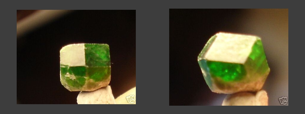 A sharp light-green gemmy demantoid from the Kunene Region (formerly Kaokoland), Namibia. Thanks to Rodney Moore's auction on eBay for the specimen and the images! |