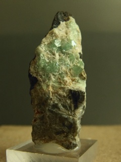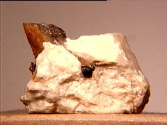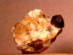 "Schaferite, a new member of the garnet group, has been discovered in a fragment of a silicate-rich xenolith from the Bellberg volcano near Mayen, Eifel, Germany. . . . Schaferite has an orange-red colour and a vitreous lustre, the streak is yellow. . . . the simplified formula as derived from chemical analyses and crystal-structure investigation is NaCa2Mg2(VO4)3."