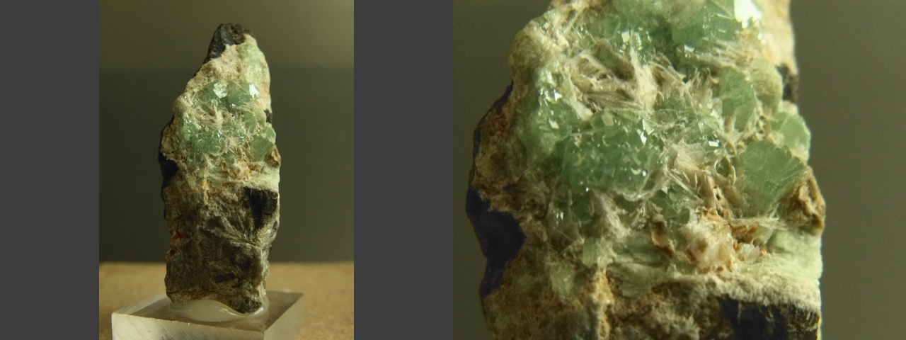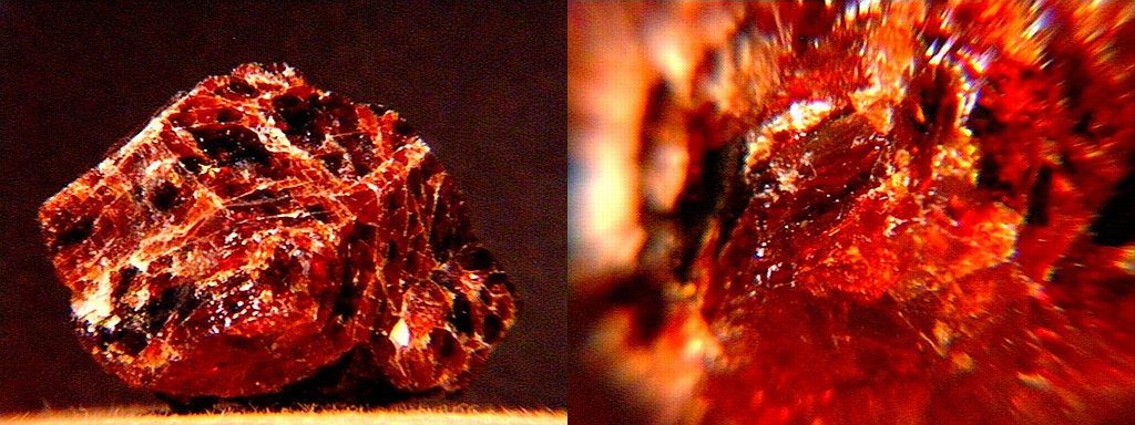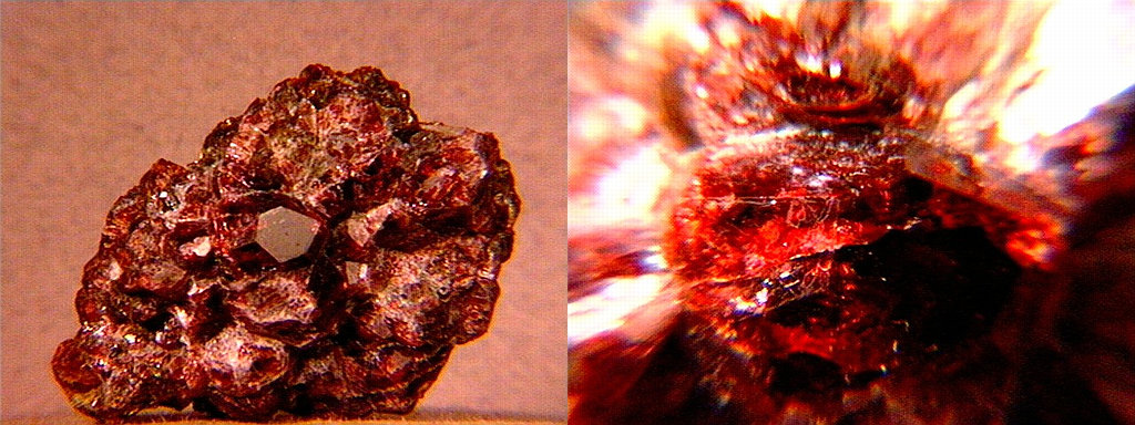 I also have a few lab-produced (faceted) garnets - these garnets can be either homocreate (same composition as natural garnets) or synthetic, that is, not having a natural counterpart. Homocreated created garnets are relatively difficult to fabricate and since, in general, natural garnets are relartively cheap, there's not much incentive to manufacture them. "Synthetic garnets" (especially with the same garnet name as the natural ones) for jewelry are almost always colored synthetic spinels. Most of the true synthesized garnets are doped YAGs - yttrium aluminum garnets. I have a cesium-doped (yellow) and a chromium-doped (green) YAG. Both are highly fluorescent - the green one has a green-red color change.