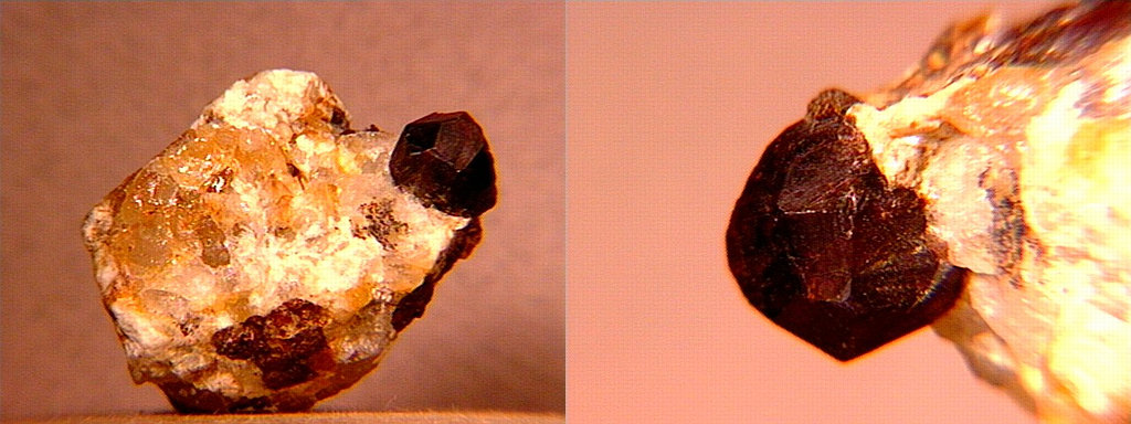 There's also some mixed garnets (two or more species on one matrix) and some combination garnets. Most garnets are not purely one species but the combination ones here are known to be "midway". Malaya (Malaia) garnets are a mix of pyrope, spessartine, and grossular (significant vanadium impurities create the color-change variety), rhodolites (and Mozambiques - red w/ orange flashes; the mine is now closed) are a combination of pyrope and almandine, and Mali garnets (1994) are a rare mixture of andradite and grossular (grandite). Grape (violet to purplish-red) garnets are almandine-spessartines from the Orissa district of northwestern India. Some garnets can be combinations of more than three species - in 1994, in Slovakia, there's an unusual vanadium-chromium garnet that's part goldmanite, uvarovite, grossular, and yamatoite.