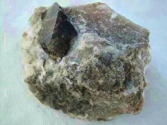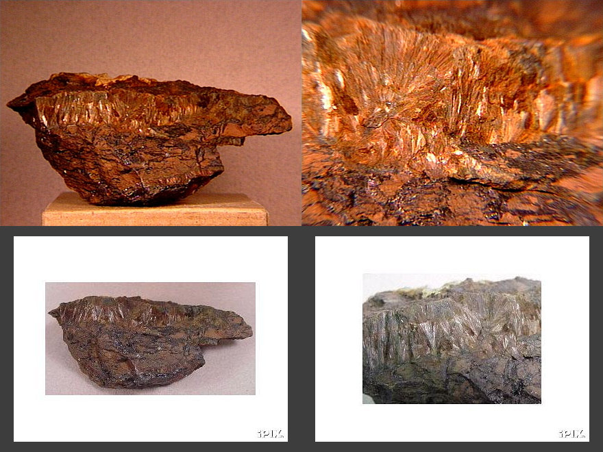 Breunnerite (named after a Count Breunner of European royalty) is an intermediate member of the magnesite - siderite series, usually around 30% iron. It's also called walmstedtite or hallite. When the iron content is more than the magnesium, it becomes sideroplesite. This small cabinet specimen, with a vein of radiating fibrous breunnerite, comes from Shady, Polk County, Arkansas. Thanks to Robert Stoufer's auction on eBay for the specimen and images! |