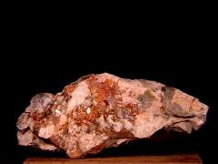 The rhodochrosite in this typical specimen from Chihuahua, Mexico is in small radiating acicular clusters. |