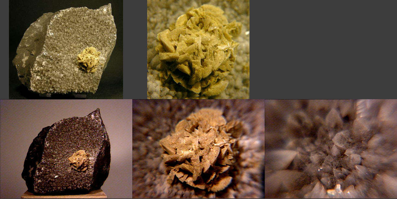 A cute miniature of (probably) a dolomite rose on scalenohedral calcite on matrix from an unknown locale. Thanks to Dieter Obrecht's auction on eBay for the specimen and the images! |
