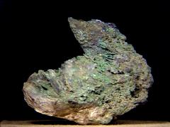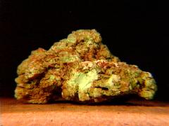 A miniature of brassy-brown coalingite (a hydrated magnesium iron hydroxycarbonate) scales on a serpentine matrix from the type locality of the Union Carbide Mine, San Benito County, California. Thanks to Tony Nikischer at the Excalibur Mineral Company for the specimen! | |