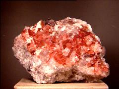 A thumbnail of pinkish-orange burbankite (a strontium barium carbonate) in matrix from Khibiny, Kola Peninsula, Russia. Thanks to Tom & Vicki Loomis at Dakota Matrix Minerals for the specimen! |