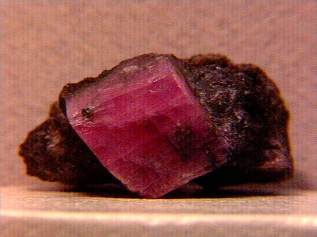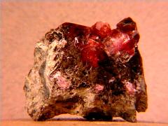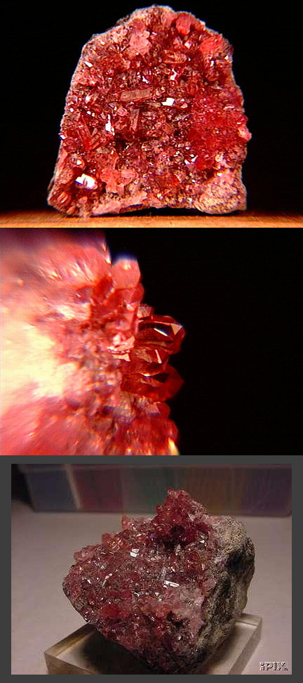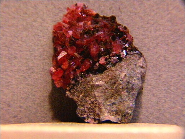 A rhodo crystal from an old collection (Cape Province, South Africa) - the side view of the thumbnail appears to show either a twinned or parallel habit (the lighting illuminates them differently). |