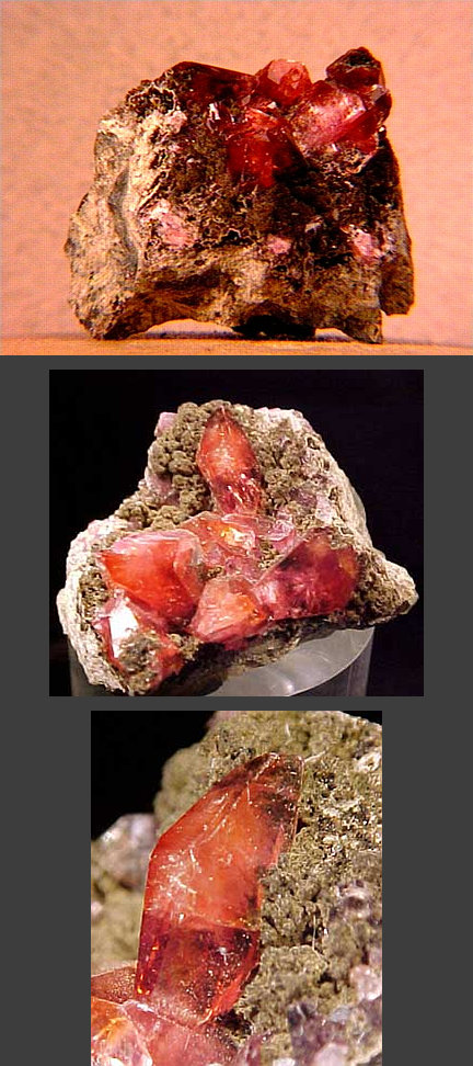 Manganese can replace some of the iron in siderite - this miniature of deep brown manganoan siderite crystals in matrix is from Mont St. Hilaire, Québec, Canada. Ex: Croad Collection 1971. Thanks to C. Carter Rich's table at the 2003 Carnegie Gem & Mineral Show for the specimen! |