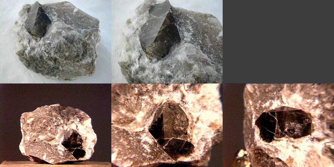 A cute Russian miniature of tan siderite crystals covering a single twinned quartz crystal. Thanks to Barbara Babel's auction on eBay for the specimen and the images! |
