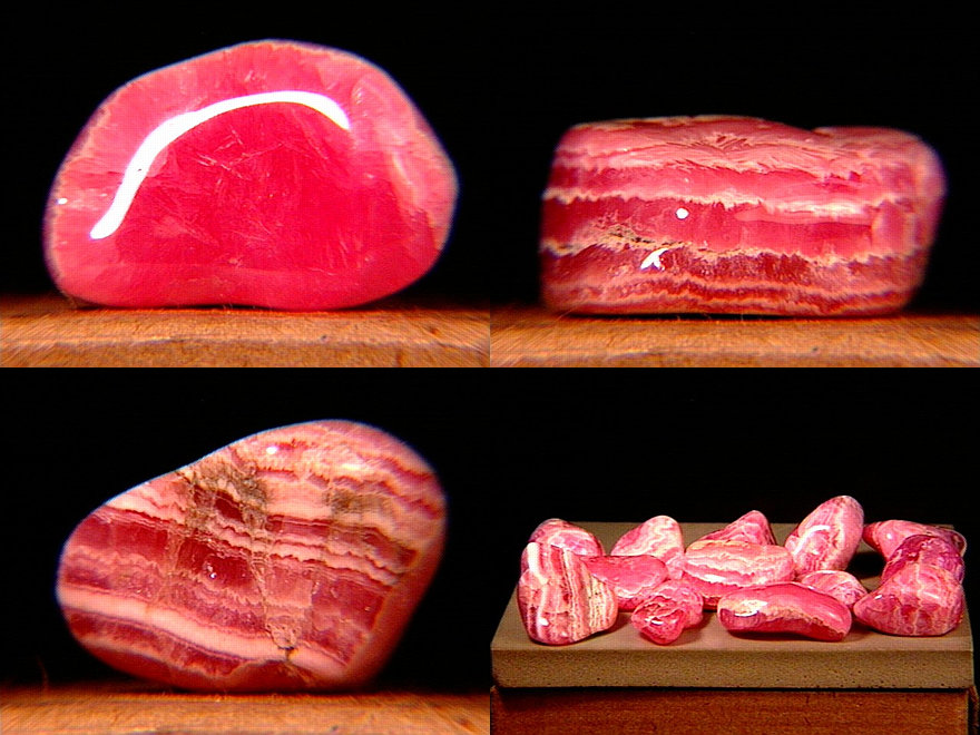 Thirteen tumbled "Inca Rose" rhodos from the famous occurence at the Capillitas Mine, Andalgalá, Catamarca, Argentina. Thanks to Eduardo Jawerbaum's auction on eBay for the specimen and the image! |