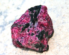 A beautiful eudialyte miniature from the Kola Peninsula, Russia. Thanks to Valery & Alexander Geringer's auction on eBay for the specimen and the image! | |