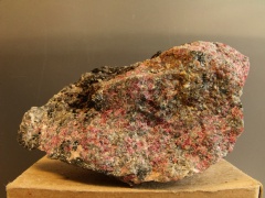 A rich small-cabinet specimen of granular red oneillite (a sodium zirconium manganese silicate) in a syenite matrix from the Pedra Balăo outcrops, Pocos de Caldas, Minas Gerais, Brazil. Even though MinDat doesn't show oneillite at this locality and oneillite looks a lot like manganoeudialyte - for which this is the type locality - the composition has been confirmed by EDS. Thanks to Kerry Day's (Kaygeedee Minerals) auction on eBay for the specimen! |
