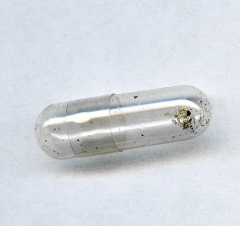 A gelcap of light-liliac odintsovite (a calcium titanium silicate) from the type locality of the dumps of the U adit, Malyi Murun Massif, Irkutskaya, Prebaikalia, Russia. The dark-green pieces are aegirine. This specimen is ex-collection of standards of Eugenii I. Semenov from author Alexei A. Konev and is part of Konev's initial single find in 1963. Thanks to Pavel Kartasov's auction on eBay for the specimen and the images! | |