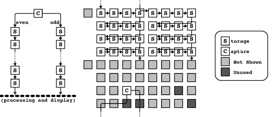 - (a) Pixel interleaving. Data arrives on two separate pathways, one with even pixels, the other with odd pixels.
