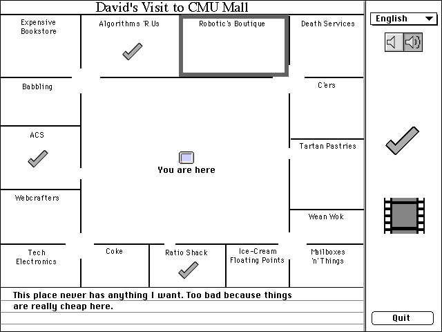 5 objects. A language pop-up menu, a sound button, a mark toggle button,