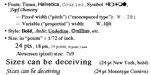 Types of fonts: