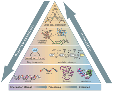figure from Oltvai, Z.N. and Barabasi A.-L. (2002) Life's complexity pyramid. Science 298, 763.