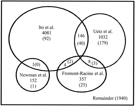 from Deane et al 2002. All data are yeast-2-hybrid datasets.