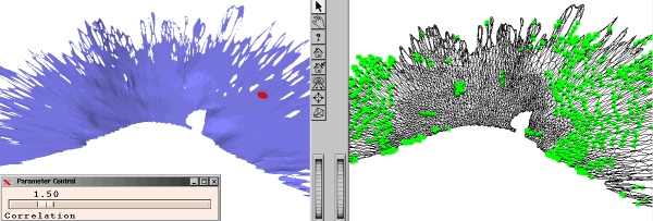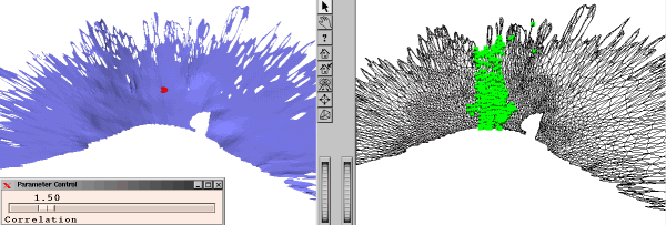 We are also studying the estimation of required overlap between views. We would like to determine, based on a given data set, how much overlap is necessary before registration will fail. By looking at the way the surface points constrain registration for a particular area of overlap, we can estimate in advance the probability of successful registration from that view. This capability is a first step to the long-term goal of an integrated planning and terrain modeling system.