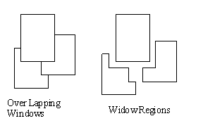 A graphical windowing system divides the screen into areas where applications can draw their output. Because windows can overlap, the windowing system must allow drawing within arbitrarily shaped parts of the screen. Windowing systems use regions to represent the visible part of a window.