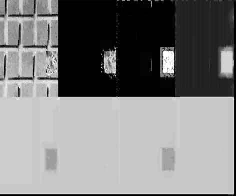 Top row: (1) Image sequence, (2) foreground appearance, (3) foreground ownership weight, (4) foreground mixing probability, Bottom row: (1) Horizontal and (2) vertical motion components for foreground layer. (3) Horizontal and (4) vertical motion components found by Black&Anandan approach,
