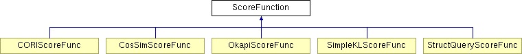 CORIScoreFunc CosSimScoreFunc OkapiScoreFunc SimpleKLScoreFunc StructQueryScoreFunc List of all members.