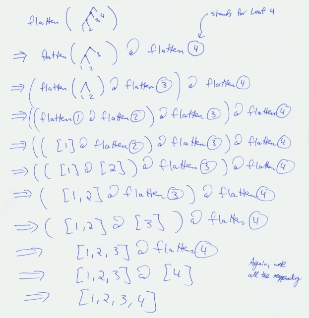 Flattening a tree using standard recursion: