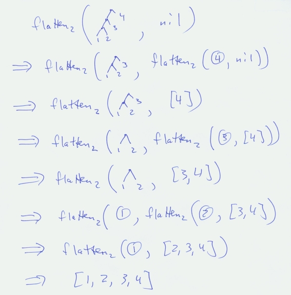 Flattening a tree using (some) tail recursion: