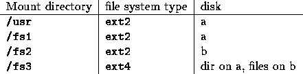 Because disk blocks can be referenced only from one place at a time (i.e. two files cannot share a block) we did not use the same technique for block numbering. But then every time we need to read/write say block 7, we must have at hand information indicating which partition is considered. We distinguish some cases (refer again to figure 6):